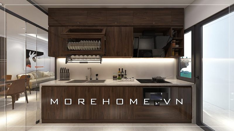 Thiết kế nội thất phòng bếp chung cư hiện đại, đơn giản và tiện nghi