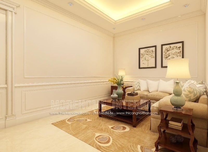 Trang trí nội thất phòng khách tân cổ điển đẹp, sang trọng tại Vinhomes Imperia Hải Phòng.