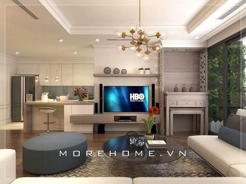 Với thiết kế không gian phòng khách chung cư đơn giản nhưng vô cùng hiện đại. Nhằm hướng tới sự tối ưu nhưng vẫn phải thích hợp với nhu cầu của gia chủ
