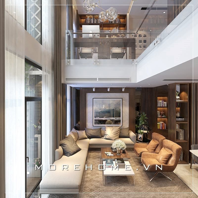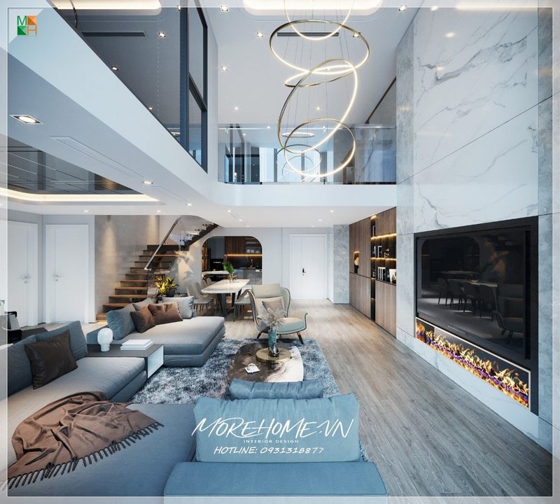 Bố trí nội thất biệt thự Vinhomes Imperia Hải Phòng ấn tượng với phòng khách thông tầng đẹp, sang trọng.