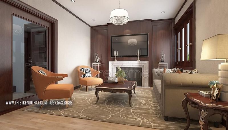 Bố trí biệt thự, nhà phố đẹp, sang trọng với ý tưởng sử dụng phong cách thiết kế nội thất tân cổ điển kết hợp đồ nội thất gỗ óc chó.