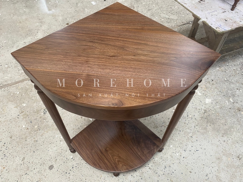 Đôn gỗ óc chó phòng khách màu sắc nâu nhạt, nâu đậm rất đẹp, tô điểm tôn lên vẻ đẹp của không gian, tận dụng làm nơi đặt bình hoa hay những đồ vật phòng thủy
