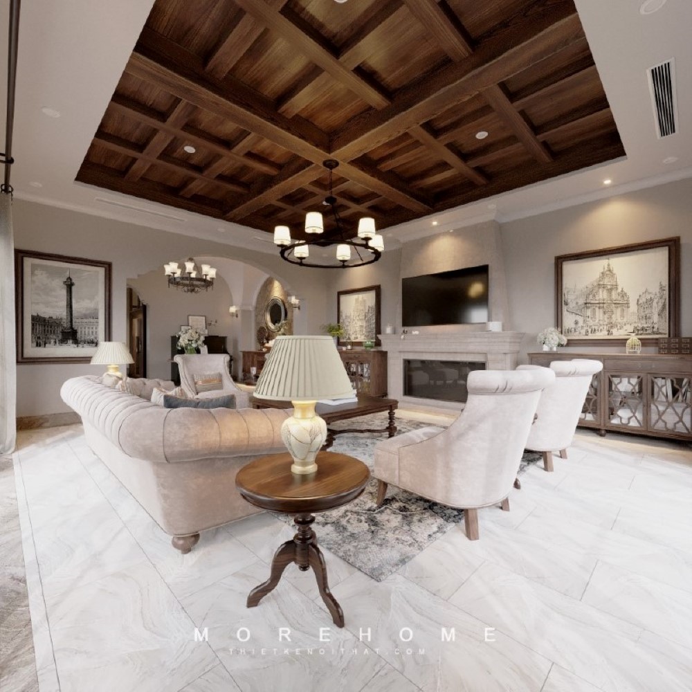 Ấn tượng với mẫu thiết kế phòng khách mang phong cách thiết kế Indochine của đội ngũ KTS của Morehome.