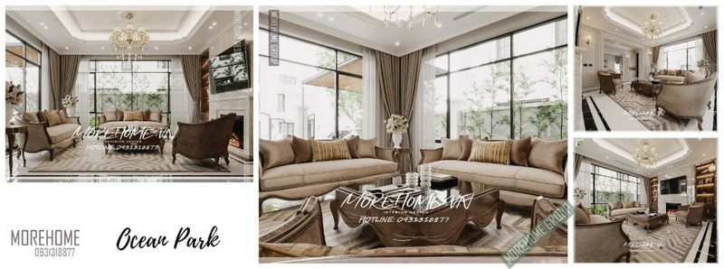 Bố trí không gian phòng khách biệt thự với nội thất tân cổ điển sang trọng và đẳng cấp