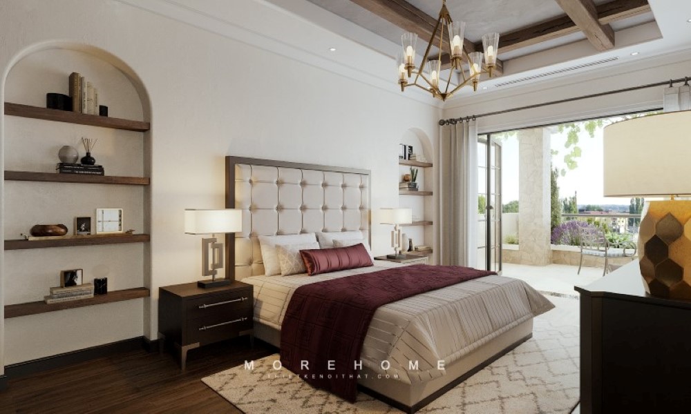 ngủ Tab đầu giường gỗ tự nhiên sẽ làm nên một không gian ngủ thêm đẹp với sự trang trí địa trung hải.