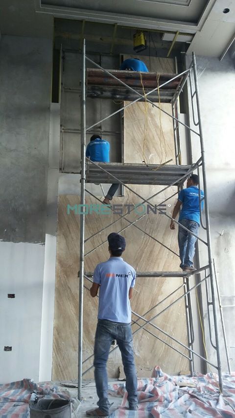 Nhiều khách hàng nhận định việc ốp một tấm đá vào tường là đơn giản. Không cần một đơn vị thi công quá chuyên nghiệp, tuy nhiên, điều này là một sai lầm. Việc một tấm đá rất nặng được gắn trên một bức tường cần phải đảm bảo chúng an toàn và bền bỉ với tuổi thọ của công trình.