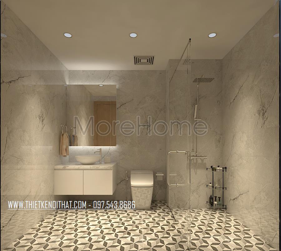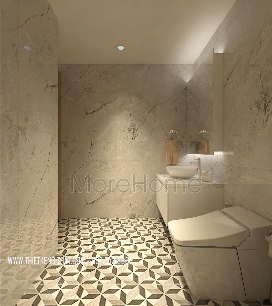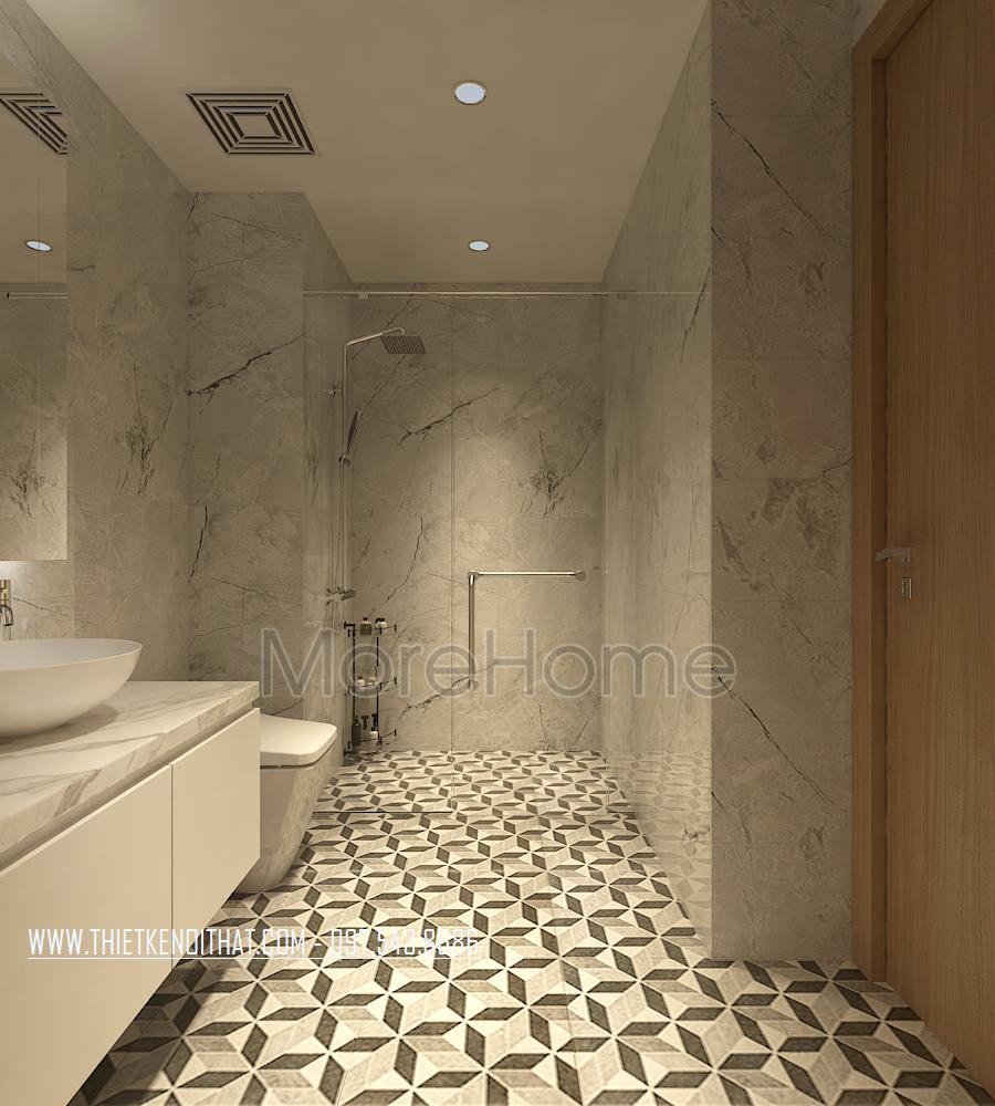 Đá ốp lát sàn, nội thất nhà tắm chung cư Sun Grand